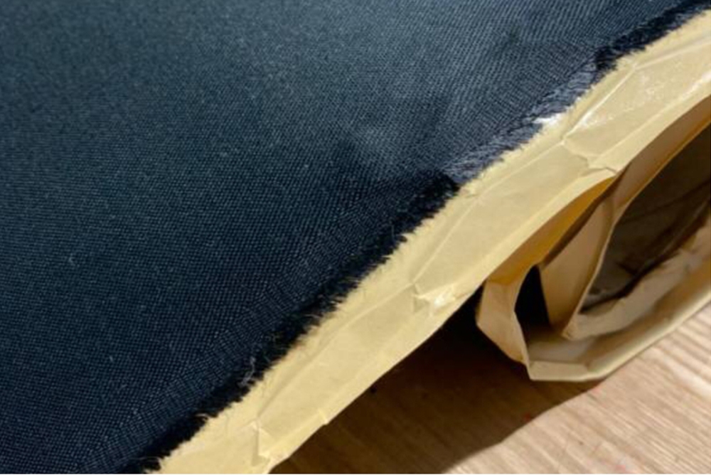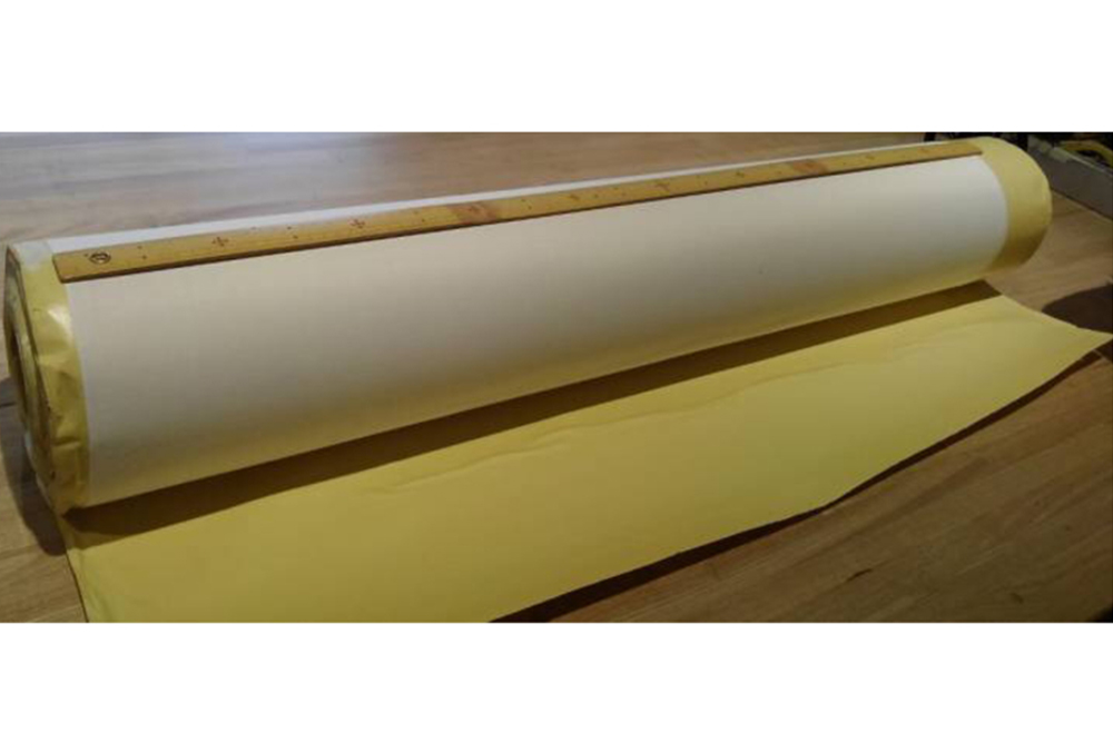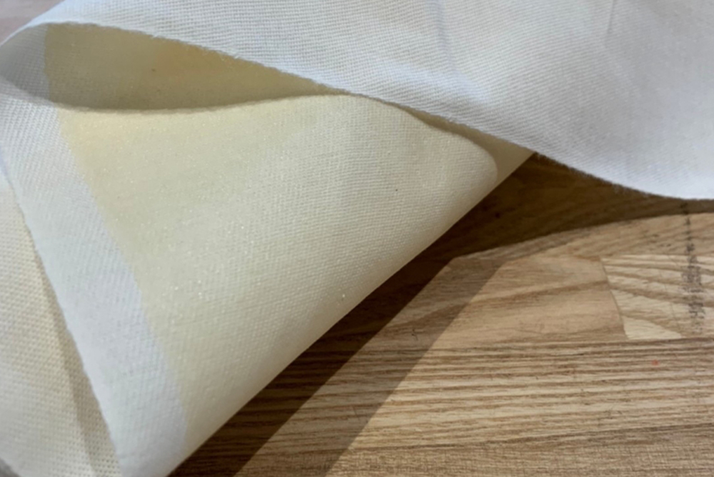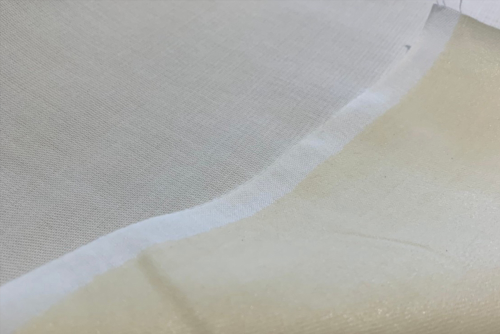 9Aとは綾織生地で、元々は木綿素材(弊社はレーヨン製)の事を呼ぶそうです。主に横幕・垂れ幕・旗・のれん等に使われています。革や生地の裏に貼合わせる事により、伸び止め・厚み増しの効果が得られる上、少し硬めのハリが出ます。弊社の裏貼り用生地の中では、シャンタンの次に厚手の商品になります。