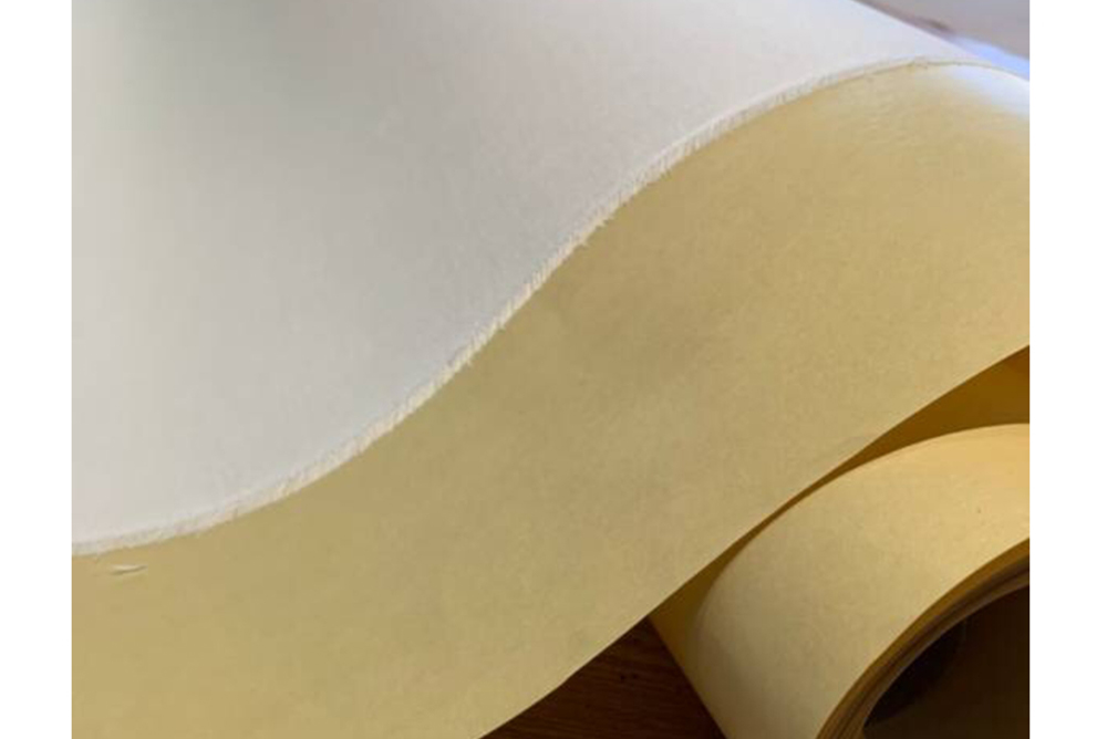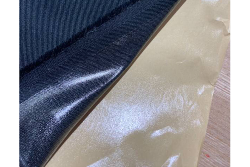 糊引きとはゴム糊を薄く引いた状態です。この状態では相手側の素材にはくっ付きませんが、加工の際に相手側に糊を塗ることにより強力な接着にする事が出来ます。皮革や生地の伸び止め、ほつれ止め、厚み増し、ハリ出し等で愛用されております。
