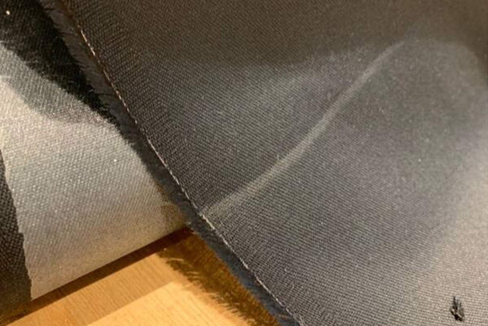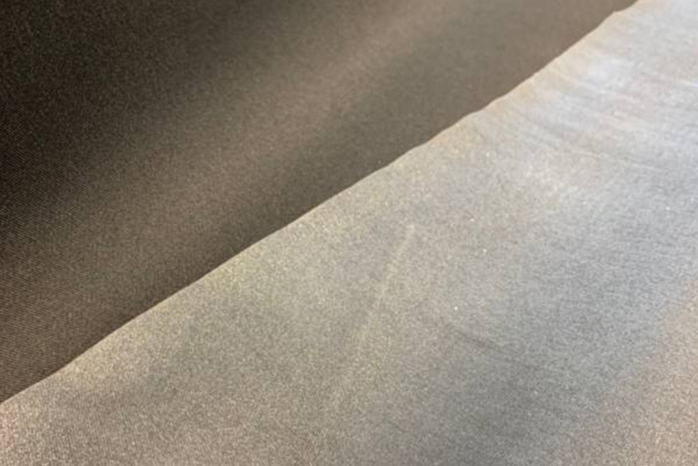 縦伸び(ロール方向)に伸縮します。革を薄くして伸縮性を出しますが、薄くなる分弱くなる上に、伸びても元の状態迄は縮まないので こちらの素材を貼合わせると、厚みと伸縮性が増して丈夫になります。この素材の糊引きは他素材と違って数人掛かりで加工しなければならない為、加工のタイミングがあり御時間が必要になります。