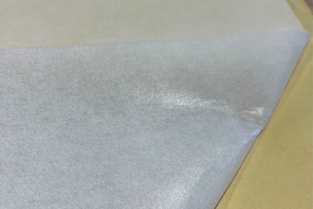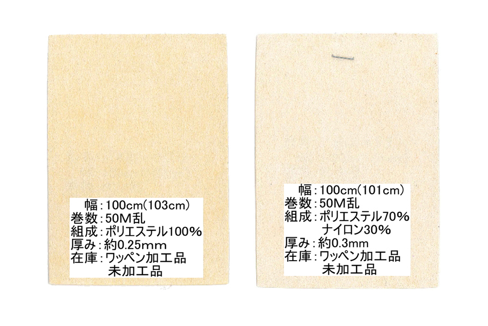 薄手の不織布です。フエルトが薄くなったようなイメージが分かりやすいかもしれません。靴では甲の表地裏地の間に入れ込む事で若干のクッション性があり、見た目に影響を出さずにソフトな履き心地が得られる他、型崩れしにくくなる為、愛用されております。その他、バッグ・ウォレット・ペンケースや小物に使用するレザーや合皮の裏面に補強する用途も可能です。