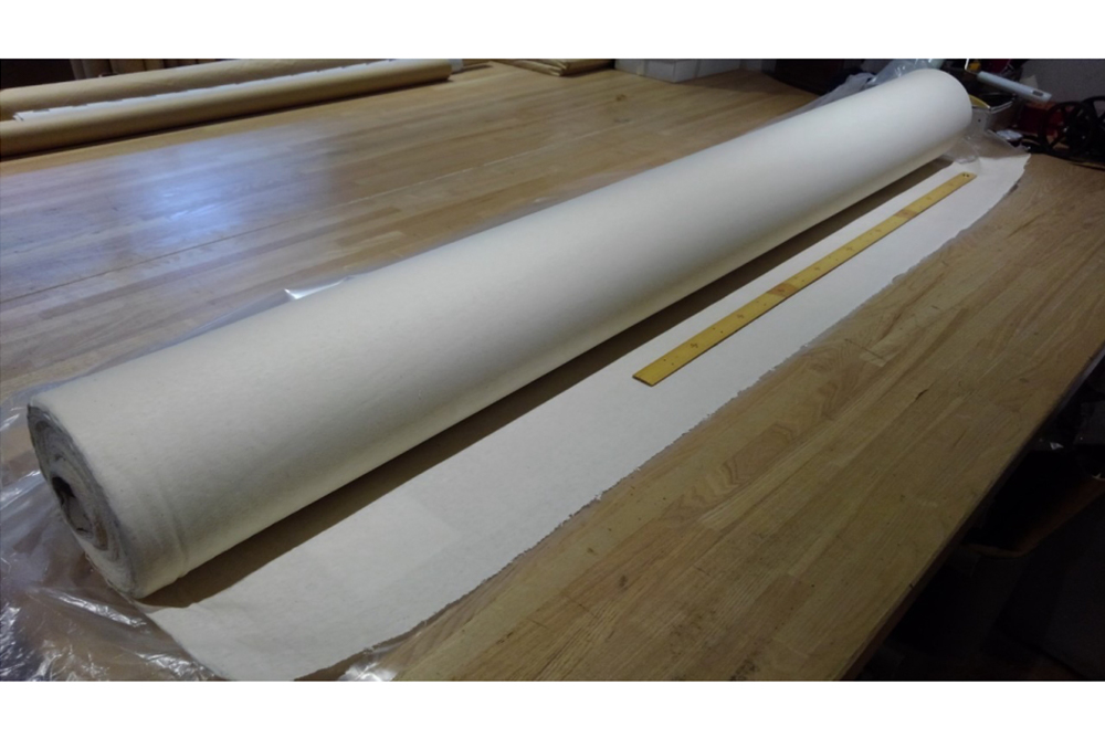 靴ではブーツ甲部分の革の裏面に貼合わせ、熱をかけて成型と伸止め用途で使われます。(クリッピングといいます)