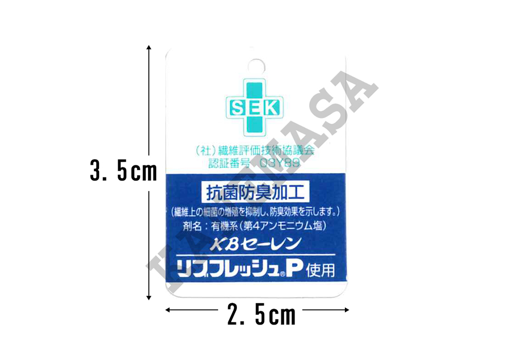 リブフレッシュは表面生地にKBセーレン社のリブフレッシュP(スーパータイプではございません)を使用し、抗菌防臭加工が施してあります。 繊維評価技術協議会によるSEKマークも取得済みで、証明タグも別売りで在庫ございます。(販売50枚単位)こちらは繊維上の細菌の増殖を抑制し、防臭効果を示します。 靴業界では、つま先上部のクッション兼 抗菌防臭の効果があるため長年にわたり愛用されております。