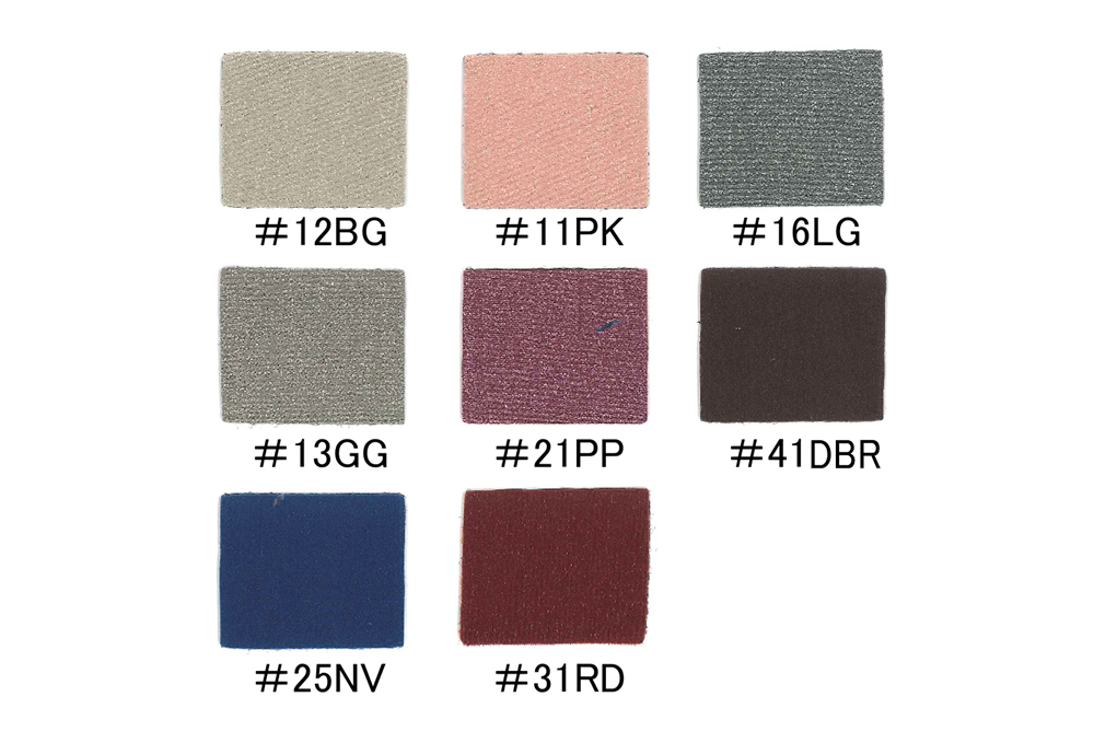 表:ナイロン25%(スパークナイロン17T1)/ポリエステル63%(カチオンエステル56T/36)/ポリウレタン12%(ポリウレタン"ロイカ"44T)